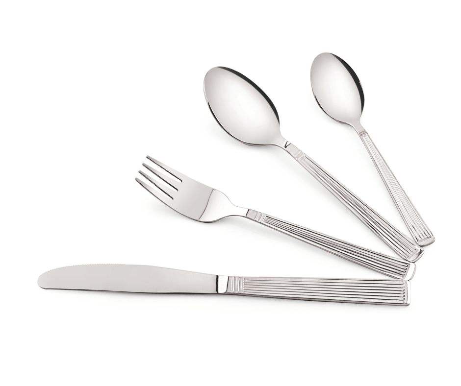 4 Piece Eco-Friendly Stainless Steel Dinnerware Set Heavy-Duty Knife Fork Table Spoon Tea Spoon Mirror Polished Silver Line