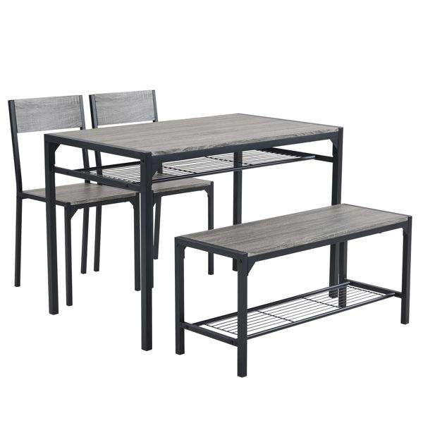 4-Piece Kitchen Dining Table Set for Small Spaces Home Kitchen Bar PU with 2 Chairs Bench for 4 People