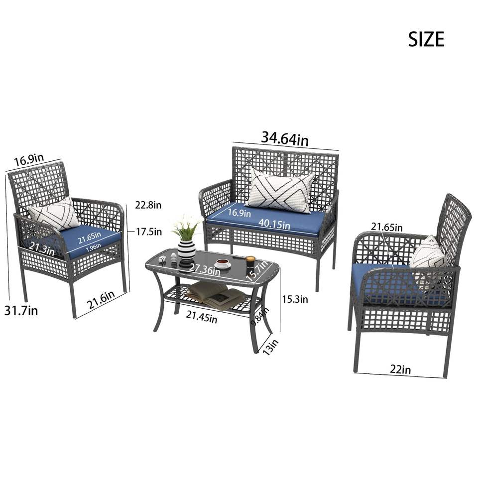 4-Piece Outdoor Conversation Set with Recliner Chair and Coffee Table Weather-Resistant Rattan for Garden and Patio