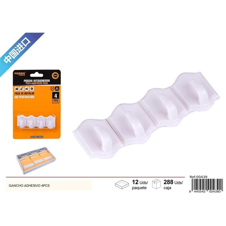 4-Piece Plastic Adhesive Hooks - Hardware Supplies