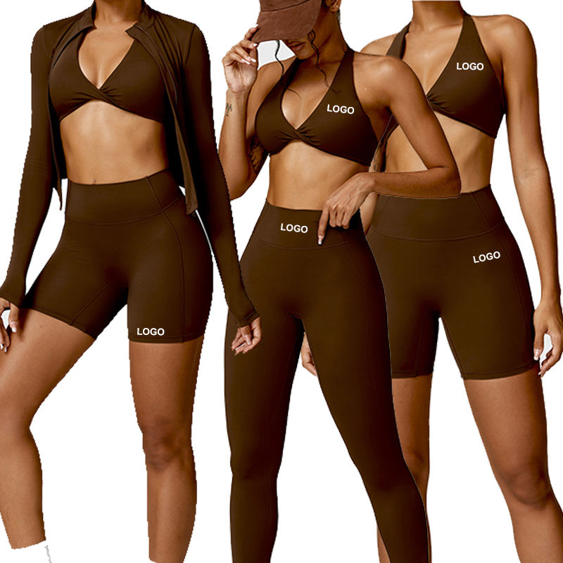 4-Piece Plus Size Breathable Eco-Friendly Workout Sports Bra Leggings Set Slim Yoga Running Zipper Jacket Scrunch Butt Shorts