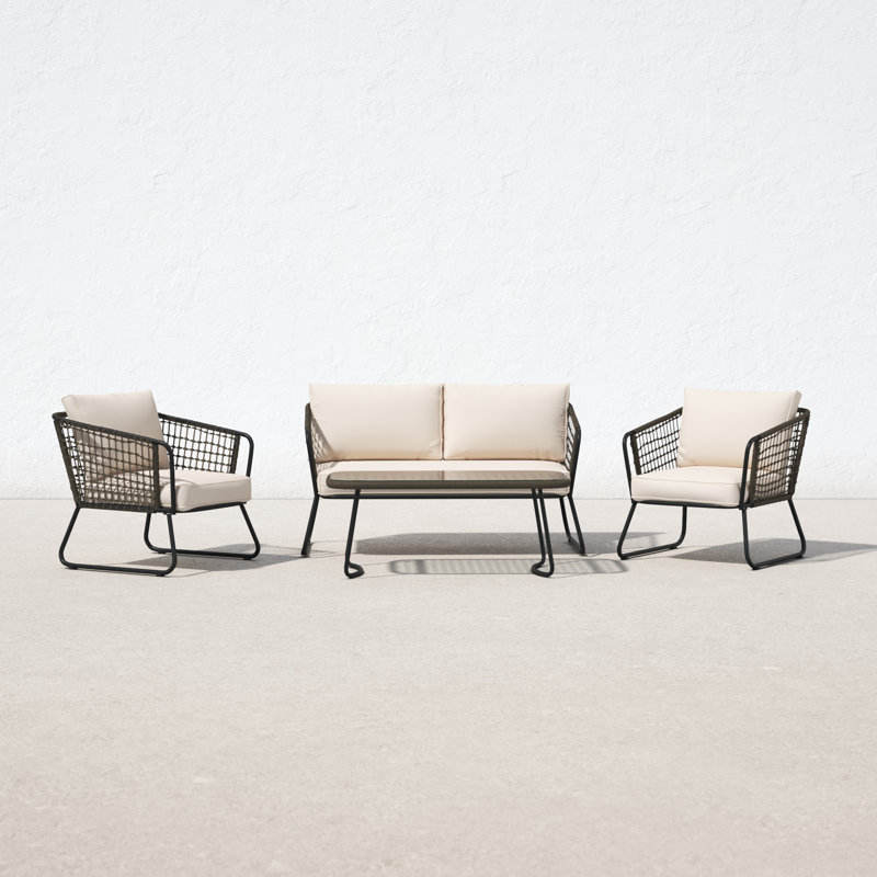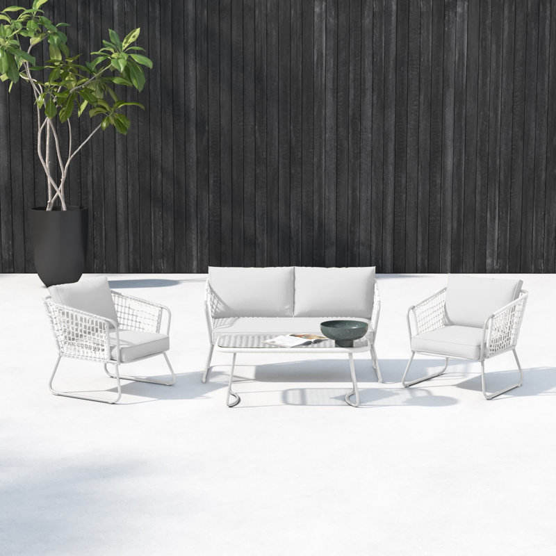 4-Piece Rattan Garden Set Comfortable Sofa Seating Group with Soft Cushions