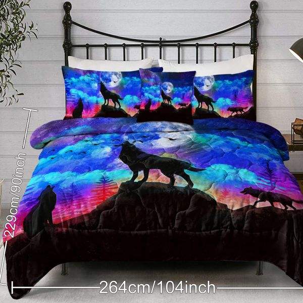 4-Piece Set Three Wolves Howling Duvet Cover Soft Bedding Set Large Size Comfortable Mysterious Traditional Culture for Temu