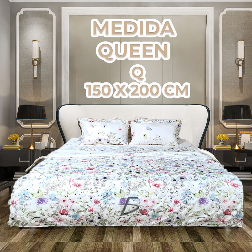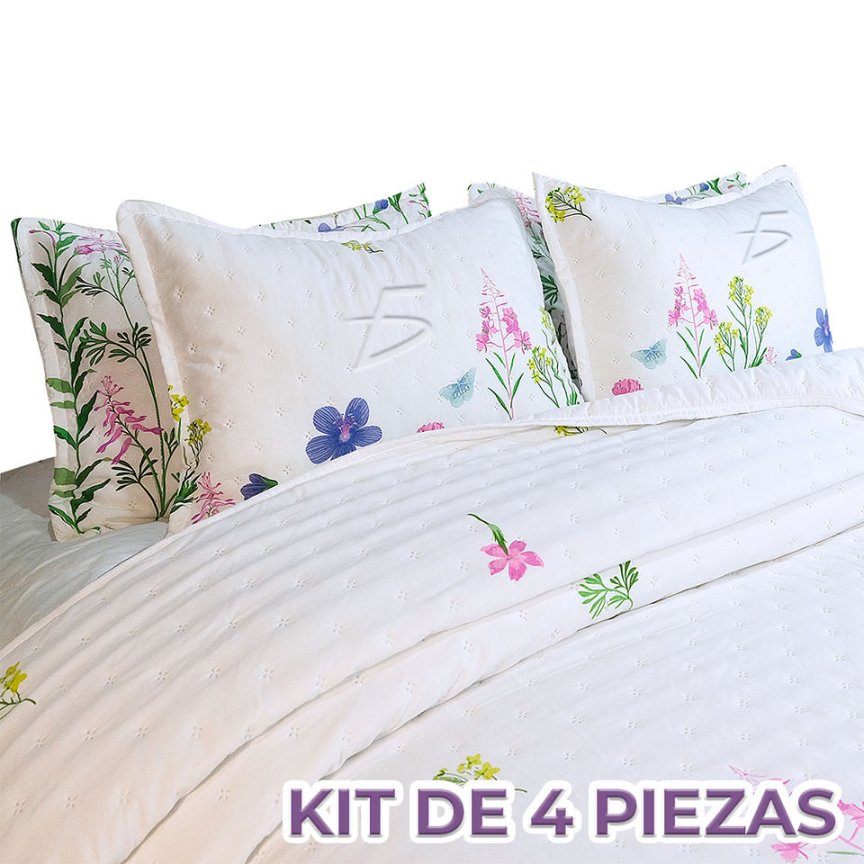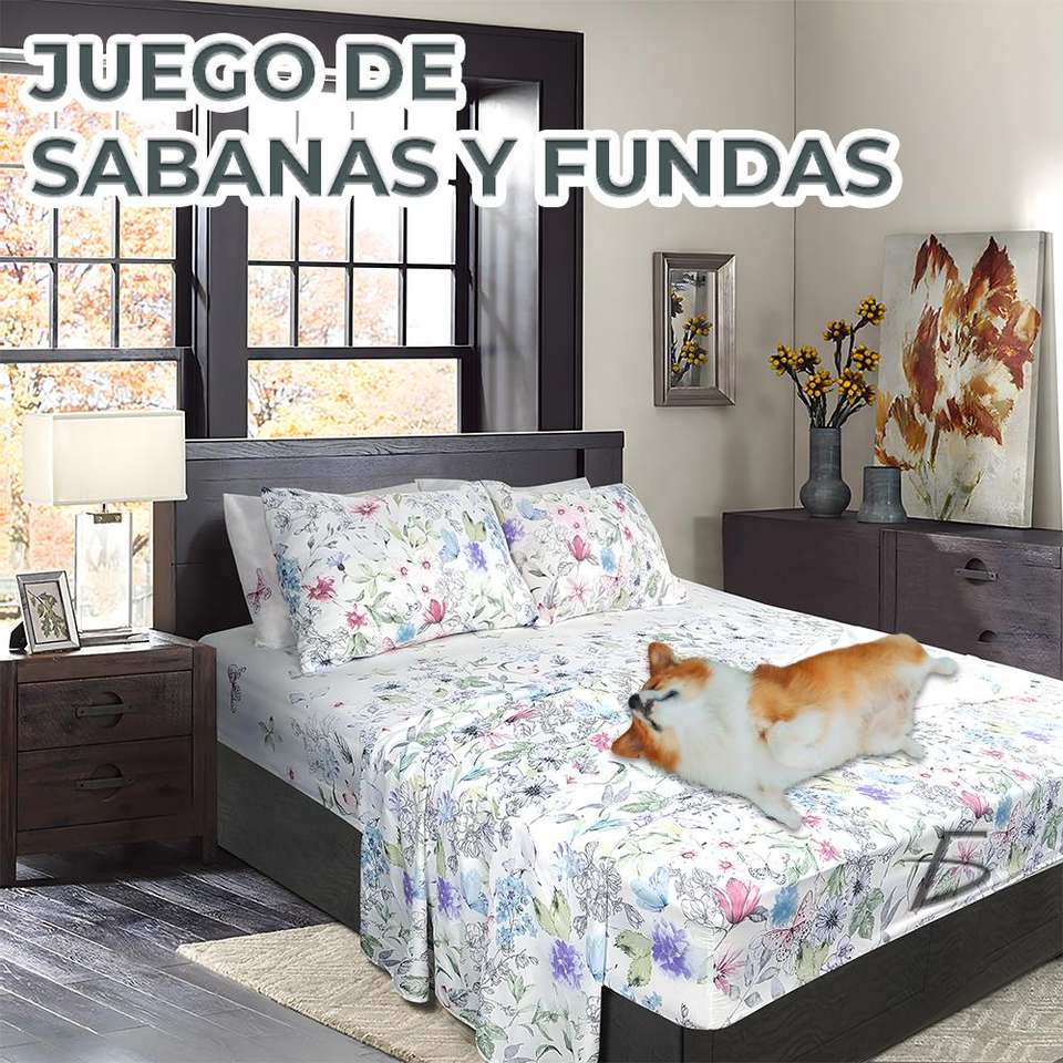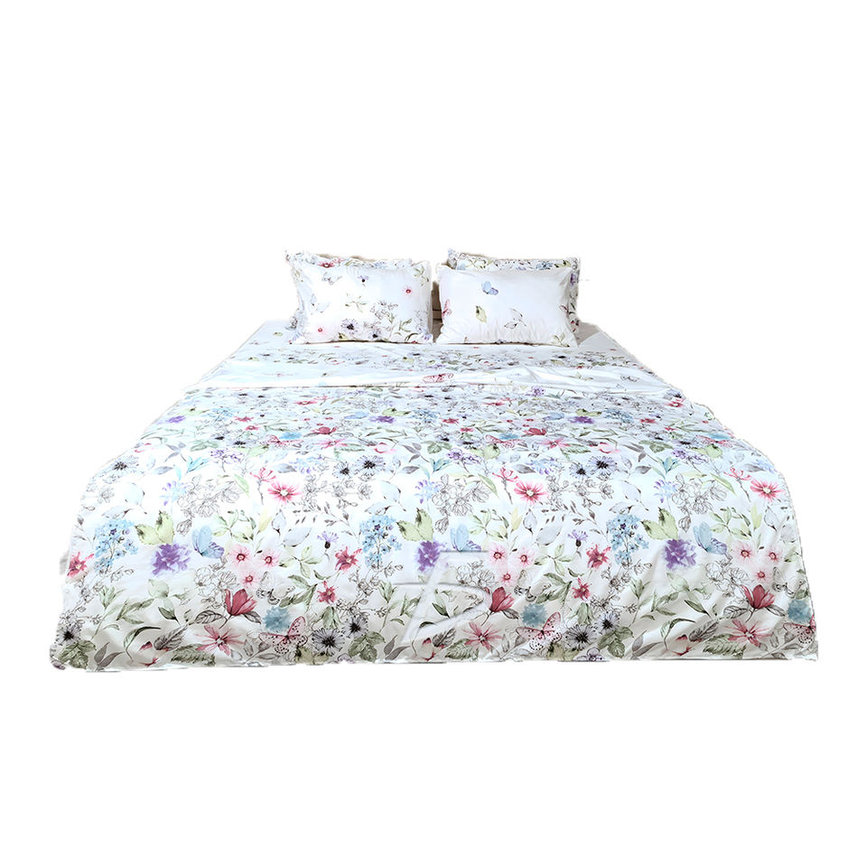 4-Piece Washed Cotton Sanding Sheet Set with Florals Home Use 300tc 128x68 Includes 1 Flat Sheet 2 Pillowcases 1.8m (6ft)