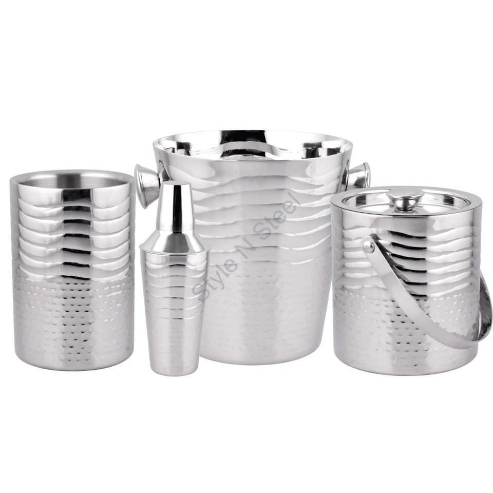 4-Piece Stainless Steel Bar Set with Dual-Lighted Cooler Wine Bar ware Classic Design Home Use Gift Sustainable Metal Accessory