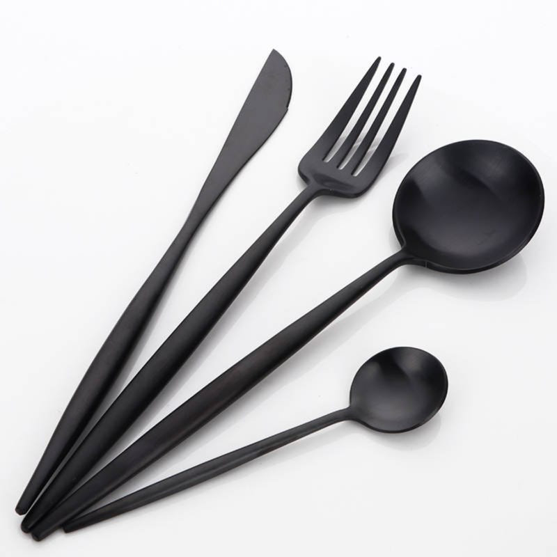 4 Piece Stainless Steel Cutlery Set Black Mirrored Polished Flatware Set Hotel Restaurant Knife Fork Spoon Cutlery Set