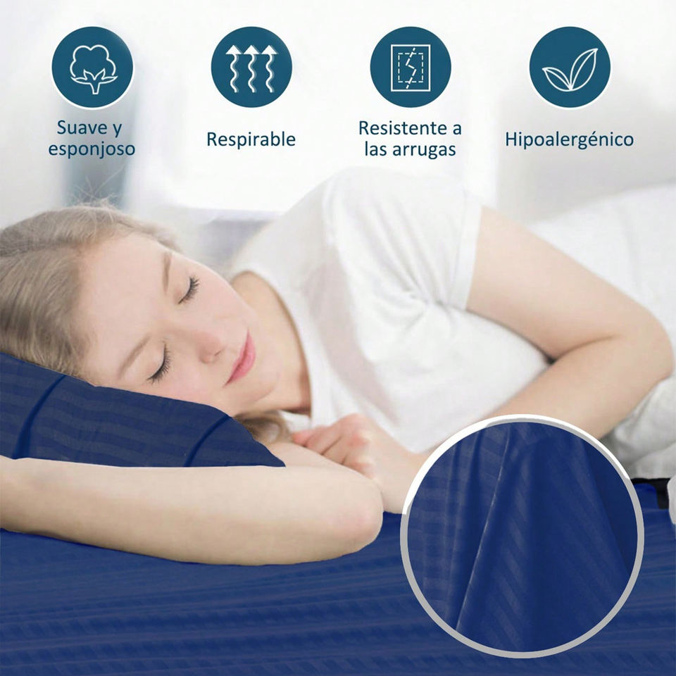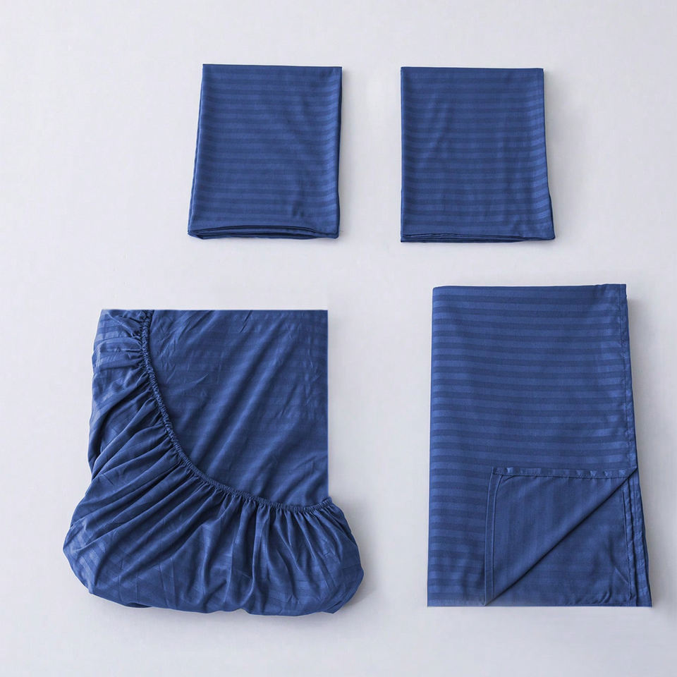 4 Piece Striped Sheet Set, 3000 Thread Count, Queen Size, Soft and Breathable, Fits All Bed Sizes