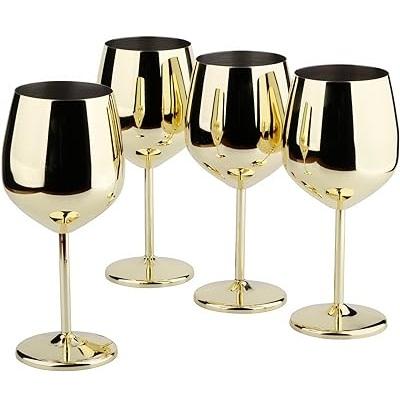 4 Pieces Golden Finished Custom Logo 304 Stainless Steel Goblets Stemmed Wine Glass Metal Cocktail Goblet Gift Wine Glass Set