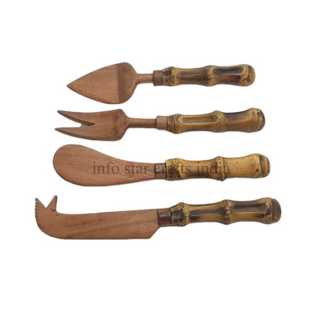 4 Pieces Set Wood & Bamboo Wholesale New Design Handmade Cheese Tools Knife Set Wholesale Cheese Cutlery