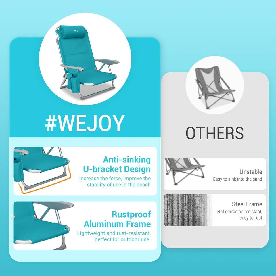 4-Position Aluminum Lightweight Folding Beach Chair Adults Low Beach Chair Shoulder Strap Cup Holder Padded Chair