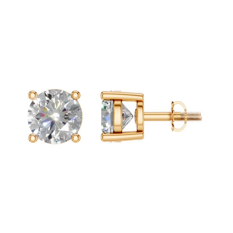 4 Prong Real 10K Solid Gold Lab Grown Diamond Stud Earrings IGI Certified Wedding VS1 Brilliant Cut Screw Back Unisex