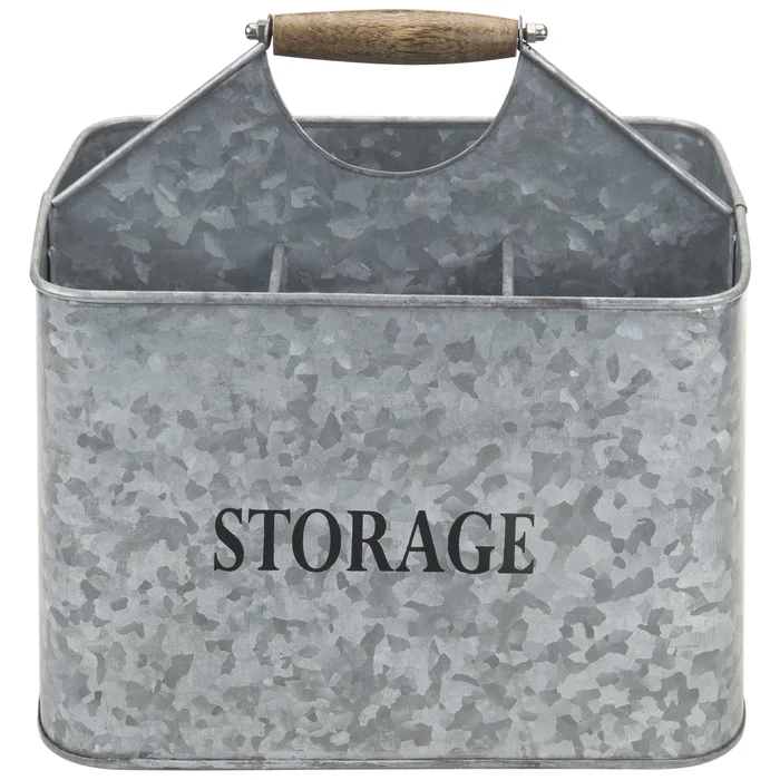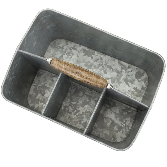 4-Section Galvanized Cutlery Flatware Utensil Caddy Farmhouse Kitchen Organizer Holder Outdoor Silverware Caddy with Wood Handle