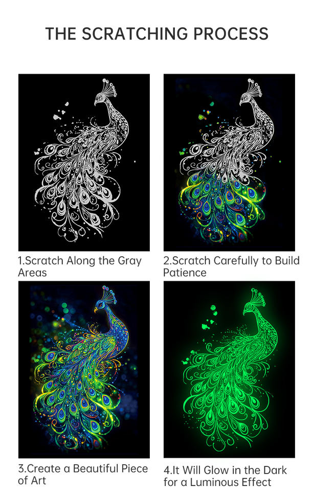 4 Sheets Set Peacock Scratch Paper Art Set for Kids Adults Magic Rainbow Scratchboards for DIY Educational Toys