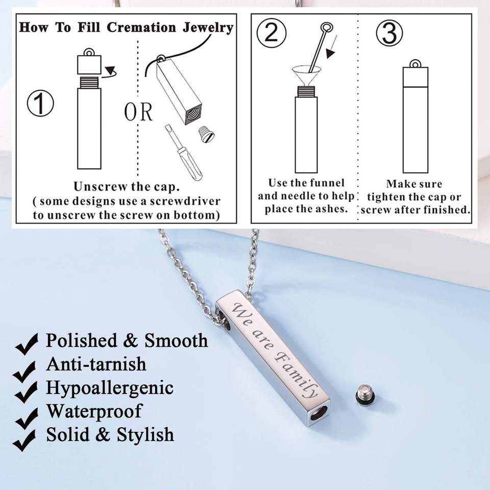 4 Sided Bar Stainless Urn Necklace for Ashes Stainless Steel Jewelry Memorial Keepsake Urn Lockets Pendant Men Women Custom Size