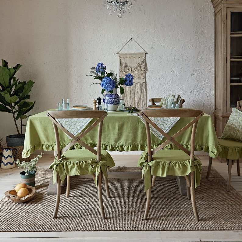4 Sided Chair Cover Handmade Pad Ties Linen Blend Seat Cover Customized Color Comfortable Kitchen Wedding Party Garden French
