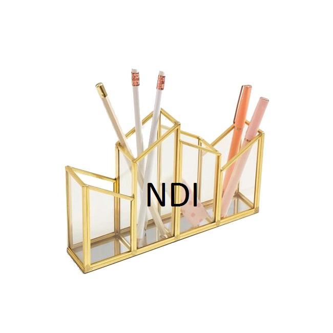 4 Slot Golden Finishing Top Trend for Daily Used Item Metal and Glass Pen Pencil Storage Container For Office Reception usage