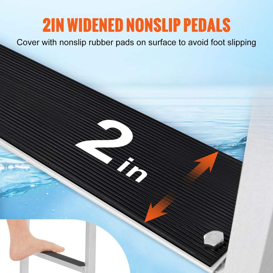 4 Step Aluminum Alloy Dock Ladder Nonslip Rubber Mat 350 Lbs Load Capacity Easy Installation Flip-Up Pontoon Boat Ladder for