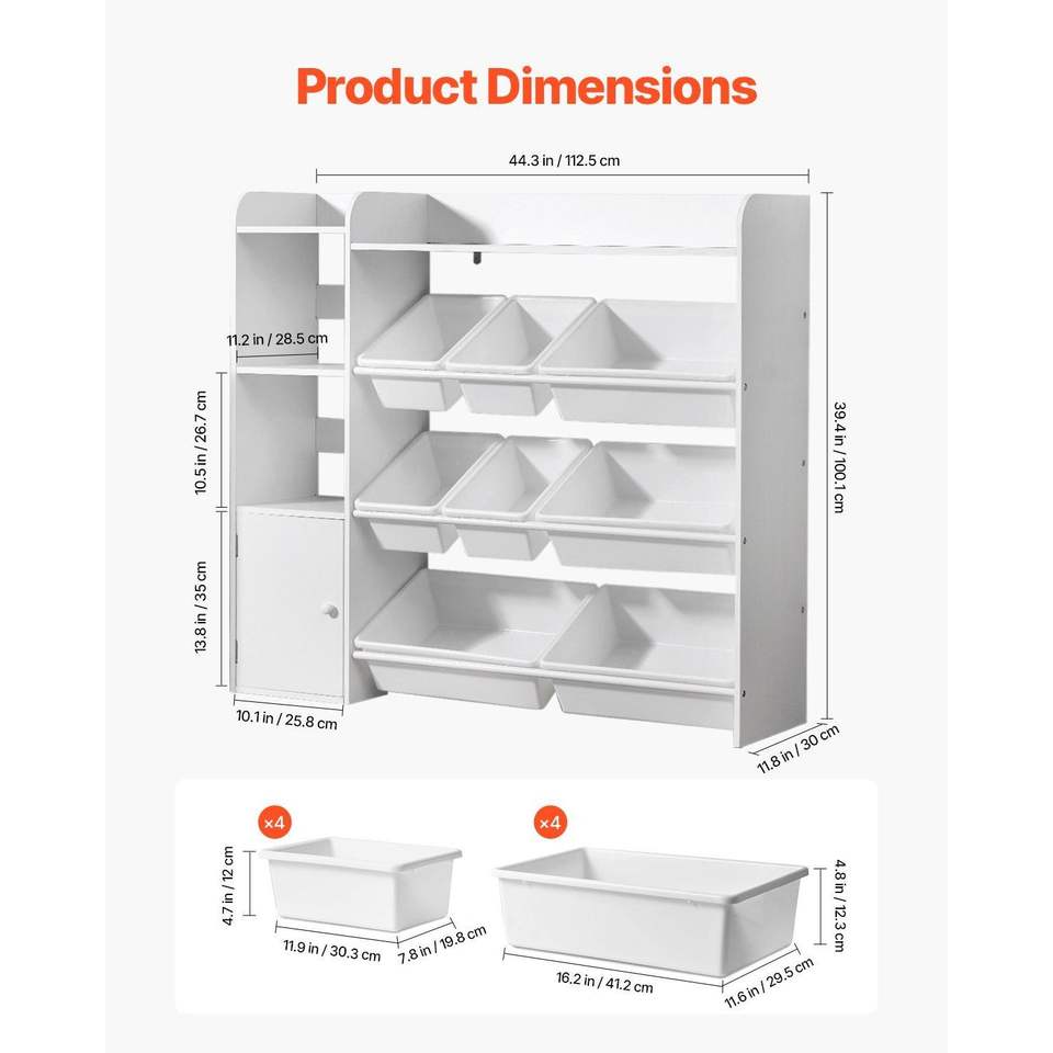 4-Tier 8-Bin Modern Kids Toy Storage Organizer Flexible White Plastic Cubby Cabinet Nursery Study Room Bedroom Living Room