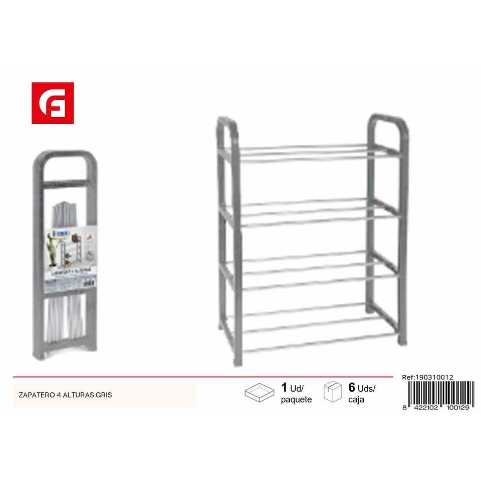 Zapatero 4 Alturas Gris Metalico Moderno Para Hogar