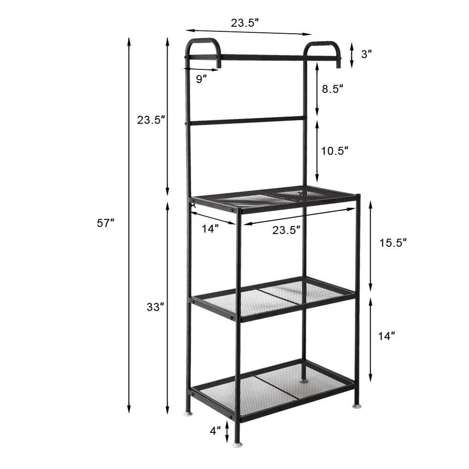 4-Tier Metal Baker's Rack Organizer Stand Kitchen Microwave Cart Storage Countertop for Dorm Kitchen Kitchen Shelf