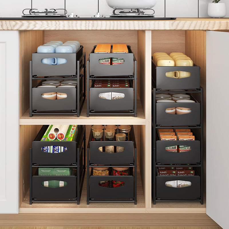 4-Tier Metal Mesh Sliding Drawer Cabinet Sink Plastic Wrap Organizer Rack Countertop Spice Bottle Shelf Kitchen Storage Holder
