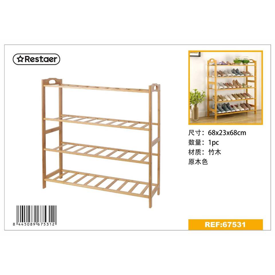 4-Tier Modern Design Bamboo Shoe Rack 68*23*66cm Storage for Home Living Room Bedroom Kitchen School