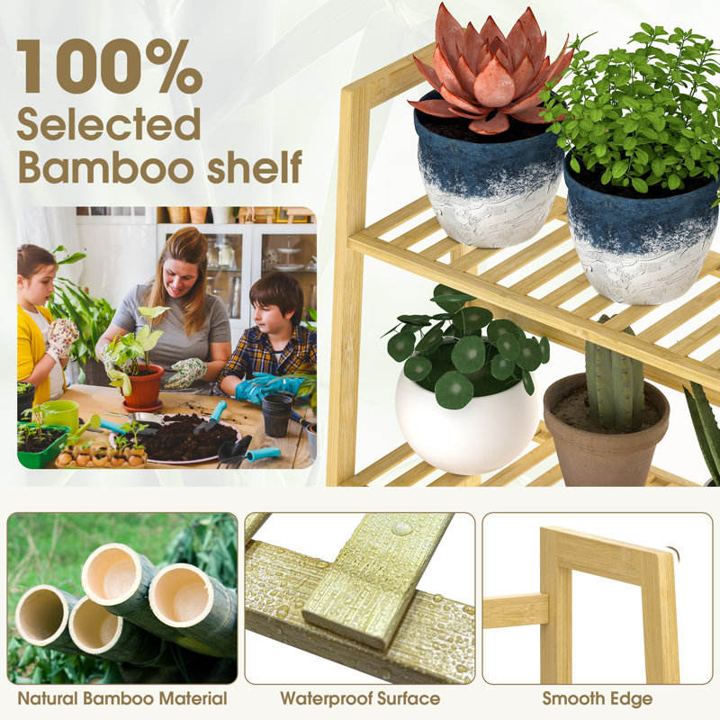 4-Tier Natural Bamboo Indoor Home Decor Plant Stand with Ladder Shelf