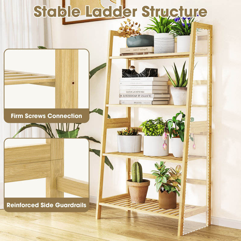 4-Tier Natural Bamboo Indoor Home Decor Plant Stand with Ladder Shelf