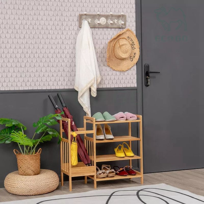 4 Tier Natural Bamboo Shoe Rack Impressive Shoe Storage Organizer With Umbrella Holder Nice-Looking Racks & Stands for Entryway