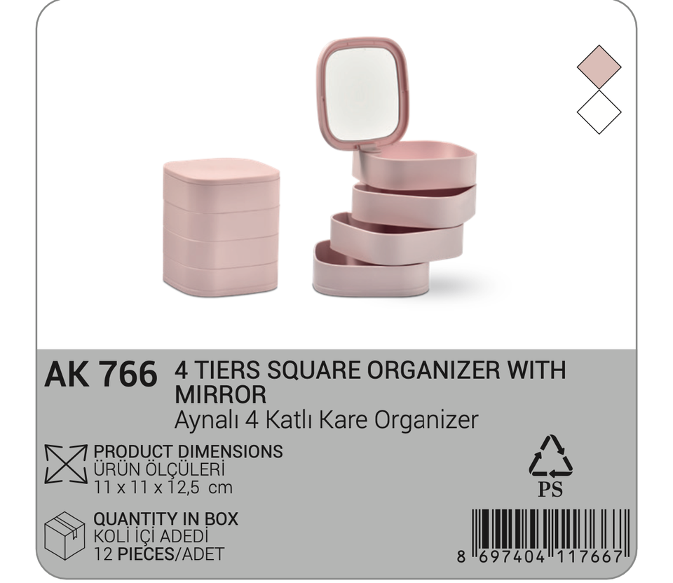 Product name:4-Tier Rotating Square Jewelry Storage Organizer