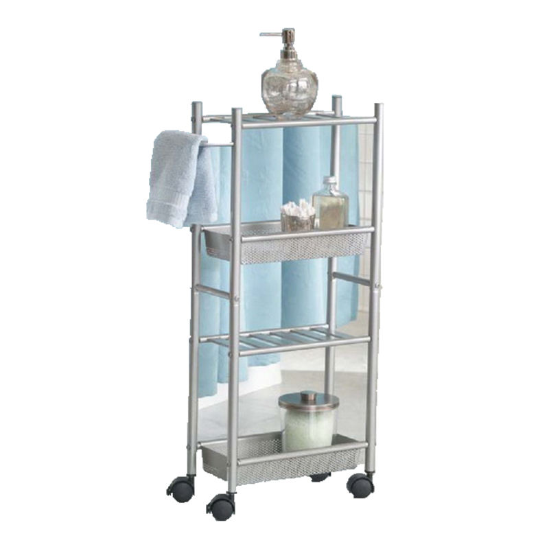 4-Tier Round Metal Tube Storage Trolley with Wire Basket