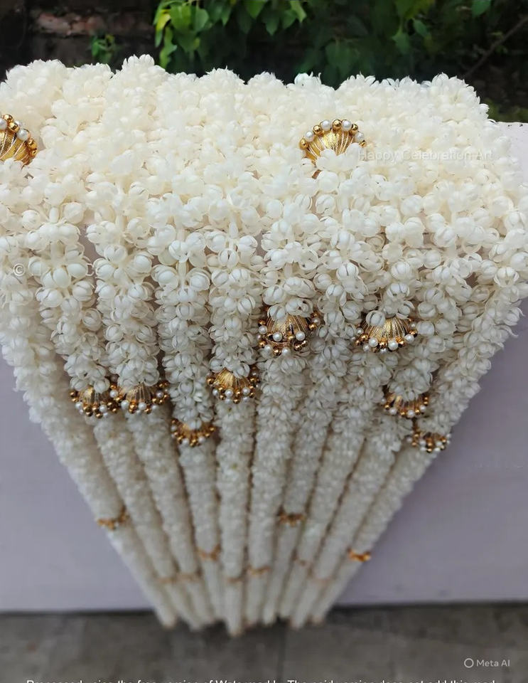 Product name:Mogra ( Jasmine) With Golden Cap and Pearls Garlands