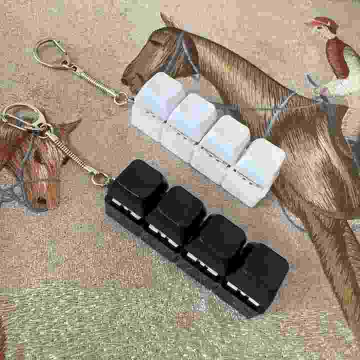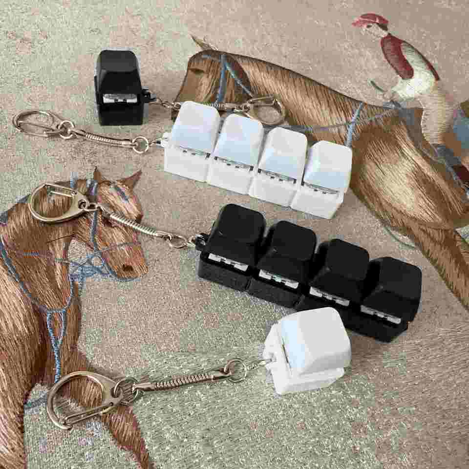 4 in 1 Button Keyboard Keycap Fidget Keychain 4 Keys Keyboard Decompression Toys Keyboard Clicker with LED Light Keychain