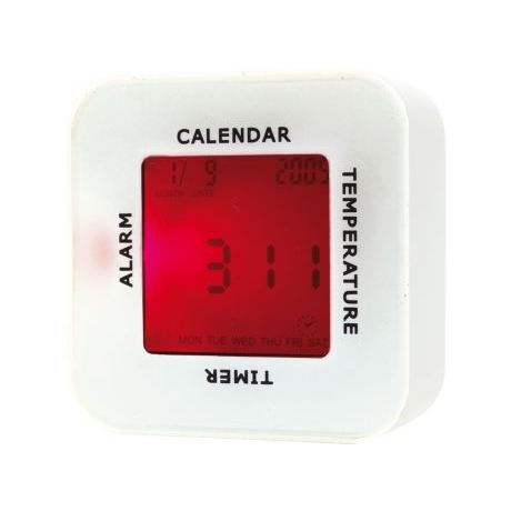 Custom Logo Radio Alarm Clock with Weather Station Square LED Display Quartz Feature Calendar Feature