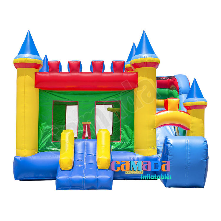 4 in 1 Fashion 5*5m Inflatable Toys Inflatable Bouncer Castle Slide Combo with Basketball Hoop Included Blower and Repair Kits
