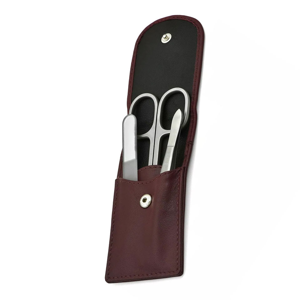 4-in-1 High-Grade Sand Finish Stainless Steel Manicure Set Fine Nail Scissor & Tweezers Presented in a Leather Pouch
