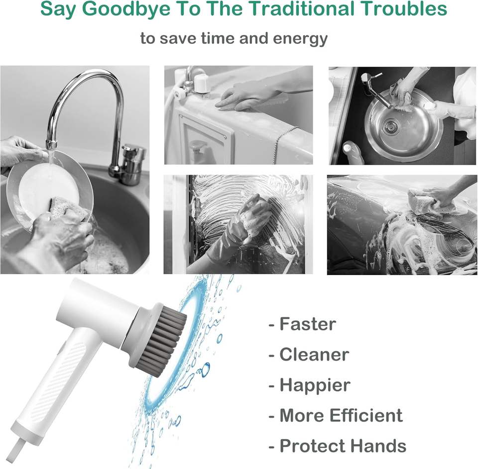 4-in-1 Kitchen Cleaning Tool Bathroom Bathtub Clean Brush Spin Scrubber Electric Cleaning Brush for Dishwashing Sink