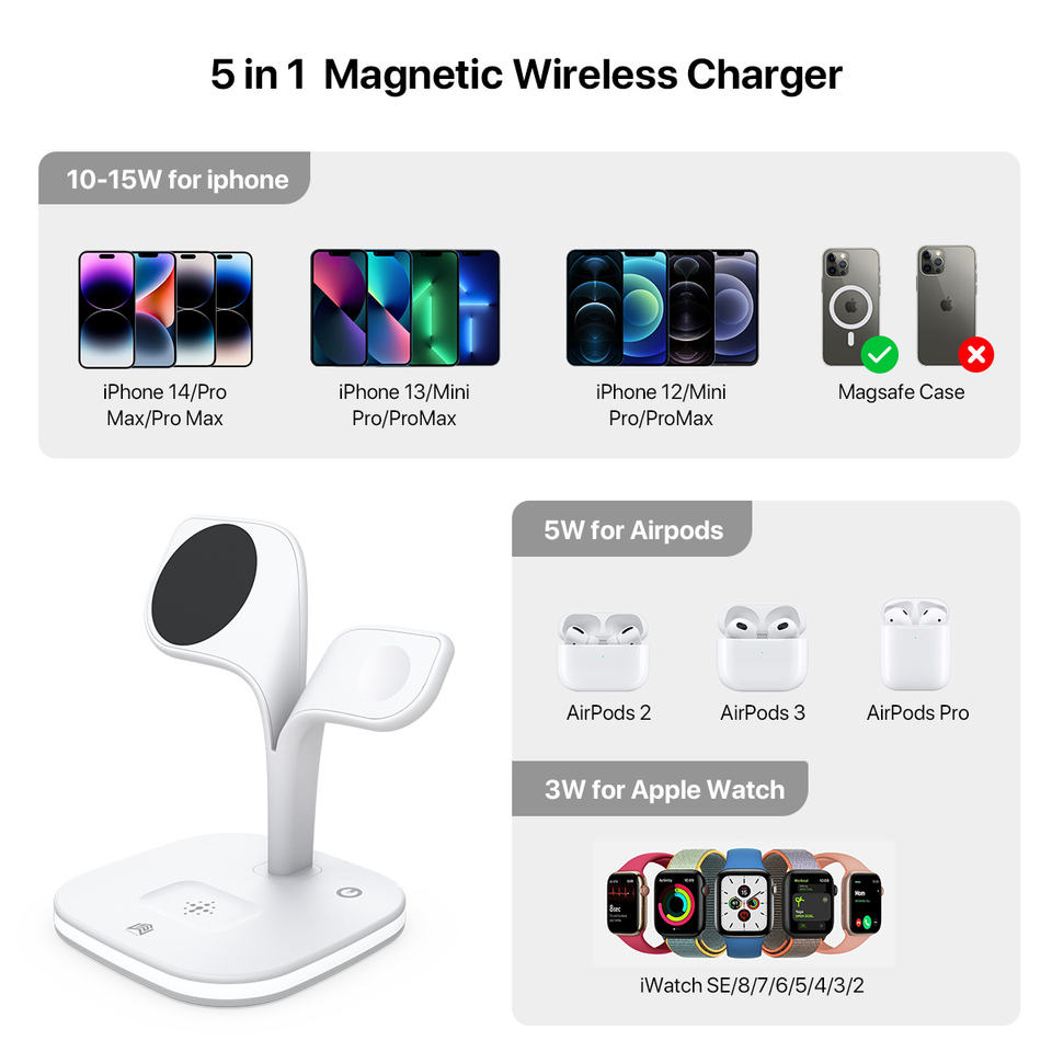 4 in 1 Magnetic Wireless Charger with Clock Fast Charging 18W Phone Holder Stand Station Lamp UD22
