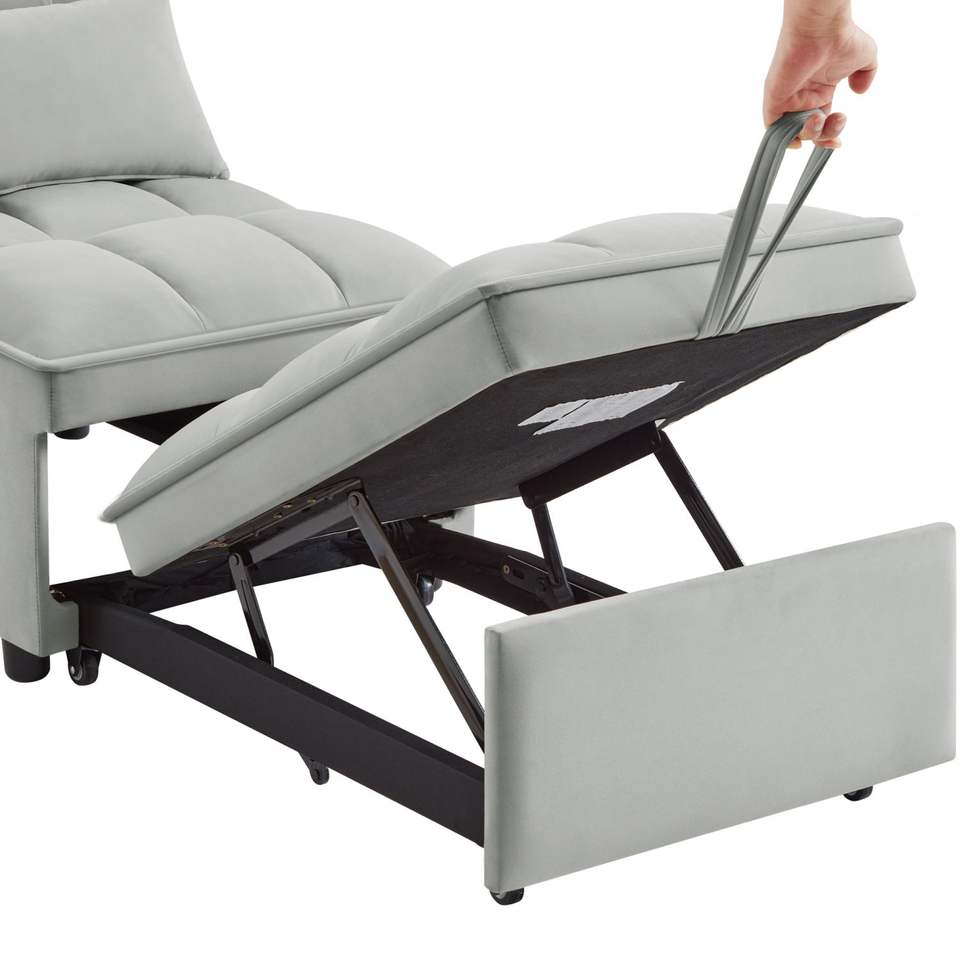 4-in-1 Multi-Function Convertible Chaise Lounge Adjustable Single Sofa Bed with Tufted Backrest Pillows Storage Pockets Gray