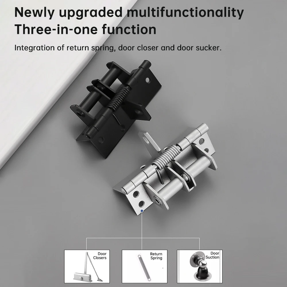 4-inch Steel Invisible Door Spring Hinge Automatic Closing Durable Silent Eco-Friendly Multi-Angle Opening 1.5mm Thickness for