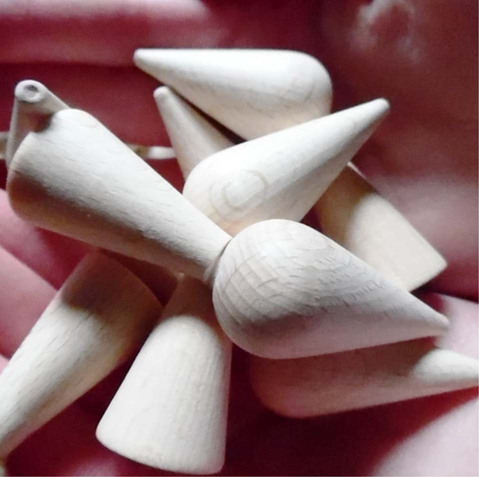 4 Macrame Round Pearls Nature Wood 35mm Heart Pattern Easter Hand Crafted Indian Product