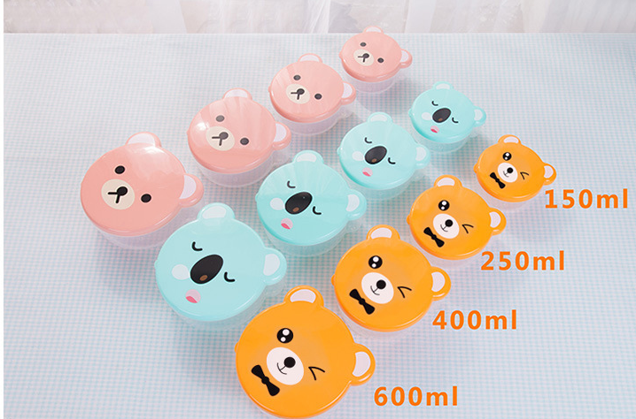 4 pack Cartoon Bear kids kitchen Gift Snacks Fruit Supplementary Food Portable Children's Tableware Lunch Box storage container