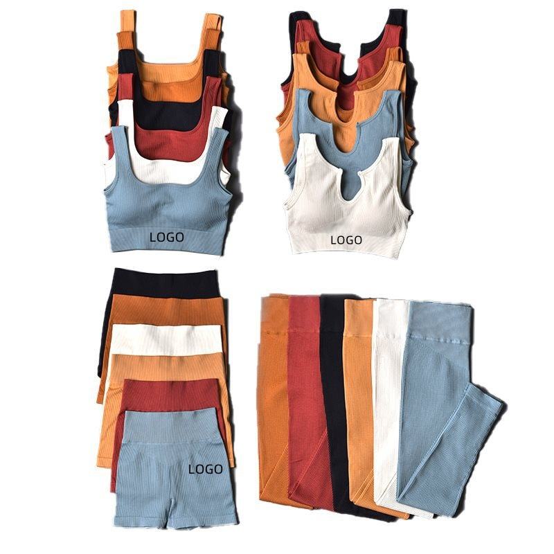 4 piece Workout Outfits for Women logo Ribbed Seamless Crop Tank High Waist Fitness Sports Yoga Active Wear Leggings Sets