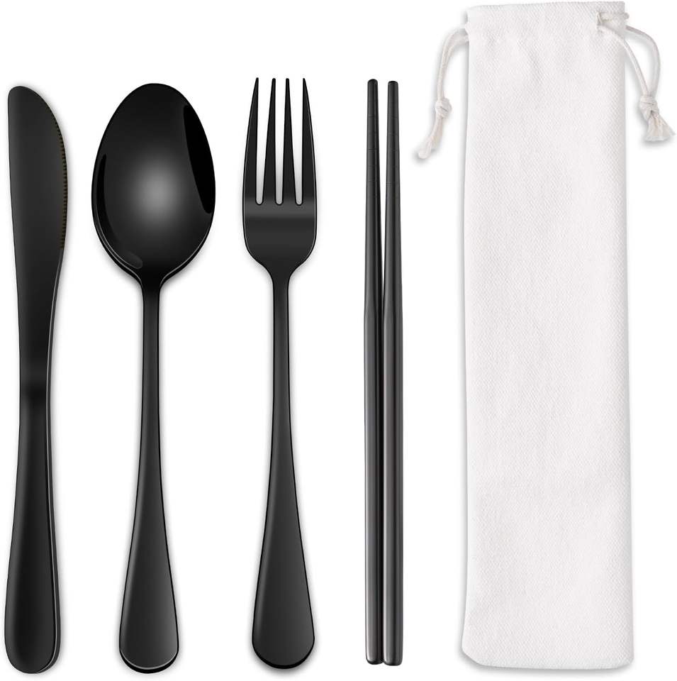 4-piece stainless steel cutlery set portable black travel cutlery set with bag