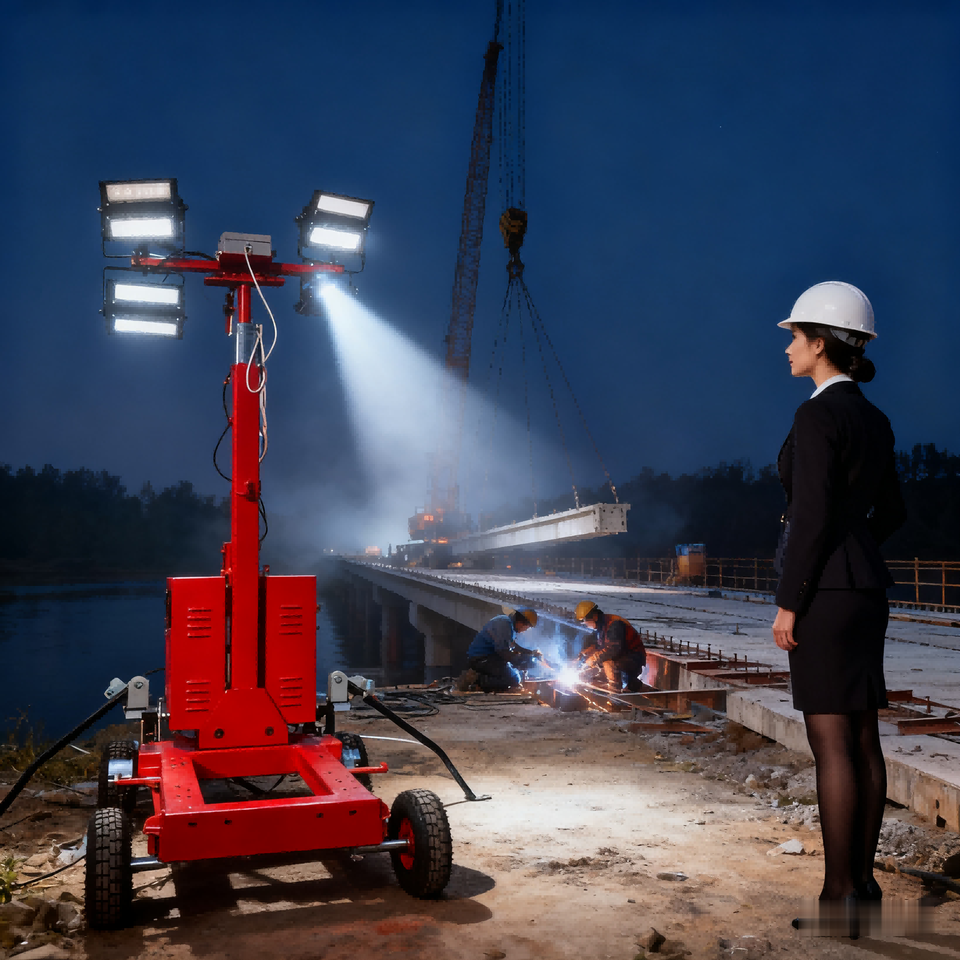 4\u002A250w Led Lights 9M LED Mobile Lighting Tower on Trailer Diesel-Powered for Mining