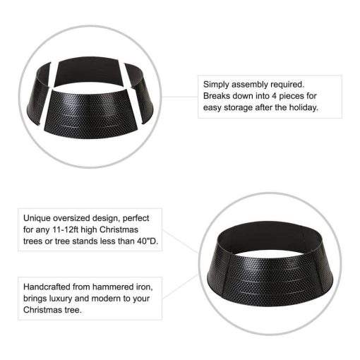 40.5 In. D Christmas Black Hammered Metal Tree Collar (KD) Pet-Resistant Stand Protection for Tree Collar Skirt Base