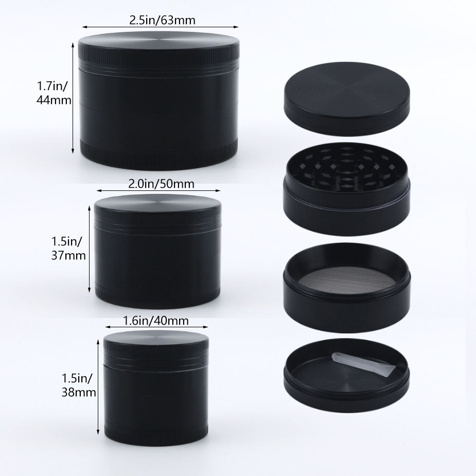 40/50/63/75mm Smoke Shop Accessories Pre-rolled Cones Smoking Tobacco Mills Crusher Metal 4-part Shredding Grinder for Dry Herbs