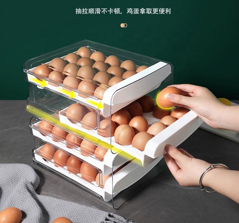 40 Grid Double Layer Refrigerator Drawer Style Home and Kitchen Pantry Organizition Pull-out Egg Rack Egg Tray Storage Box