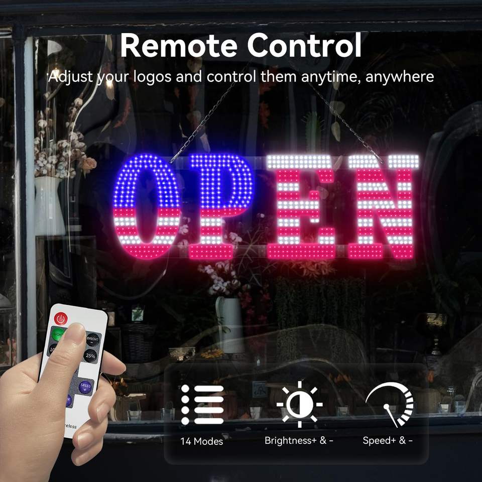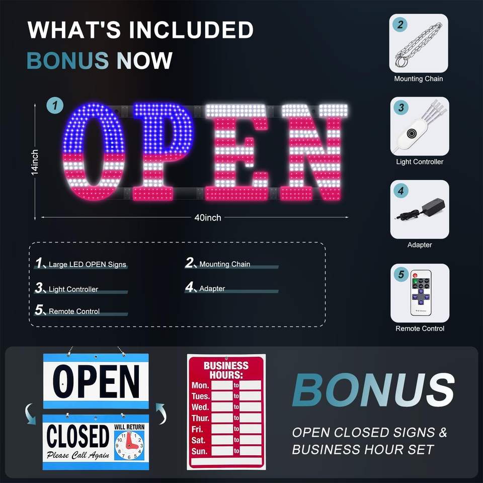 40 In X 14 In American Flag Led Open Sign With Remote Control Dimmable Brightness Flash Modes Easy Hang