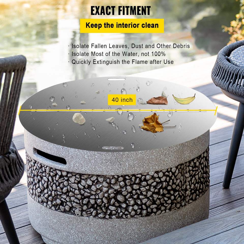 40-Inch Foldable Fire Pit Ring with Snuff Cover 430 Stainless Steel Spark Screen Cover 3mm Thickness-Fire Pits Accessory